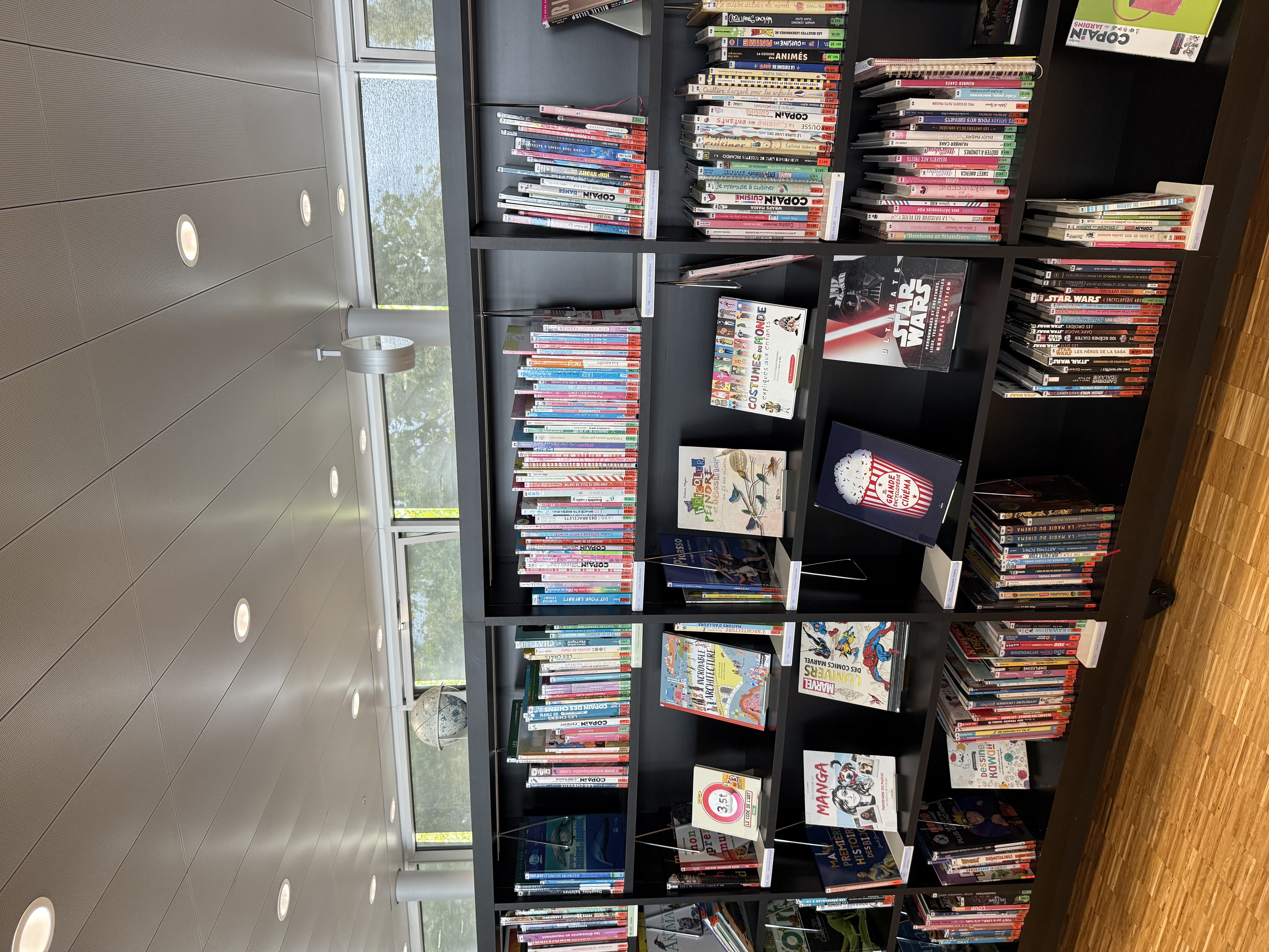 Après quelques mois de travaux de réaménagement, c’est dans un bel espace à l’étage du bâtiment d’origine que bibliothèque publique et bibliothèque scolaire d’Entre-Bois, précédemment séparées, se sont retrouvées réunies pour proposer une offre documentaire riche dans une ambiance chaleureuse. Entre alcôves pour la lecture au calme, tables propices au travail en groupe, espace en gradins pour des lectures de classe et autres activités de médiation, ordinateurs pour les recherches documentaires et des collections variées de plus de 26 000 documents, c’est une offre de services revisitée et modernisée qui semble déjà avoir séduit un large public ravi de retrouver une bibliothèque de proximité, accueillante et lumineuse.