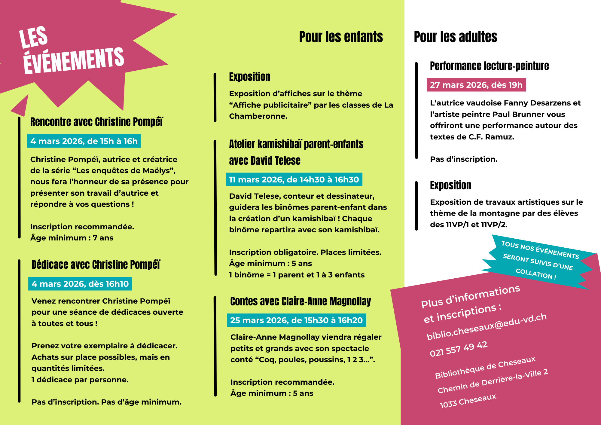 Bienvenue à la bibliothèque de Cheseaux ! Nous vous attendons pour vous faire découvrir mille